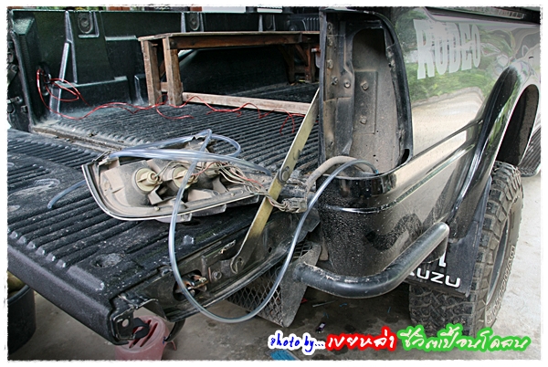 ปลายสายยางก็เอาไปซ่อนไว้ที่ไฟท้ายโดยให้ปลายสายอยู่ในลักษณะชี้ลงพื้น
