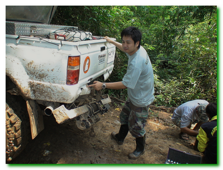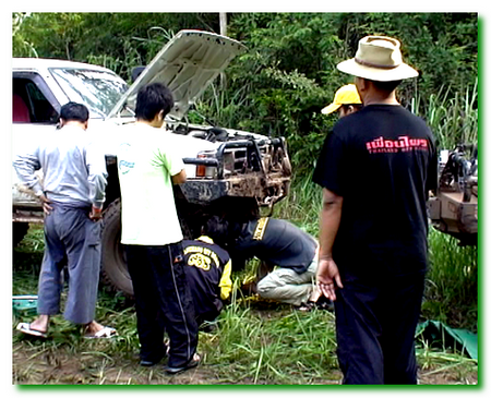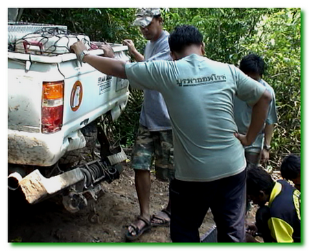 กันชนห้อย...น็อตยึดขาดทั้ง 2 ตัว..ผลจากร่องวีแรก..ตั้งแต่ตอนขาเข้าโน้นแน่ะ.. เสือซ่าส์เก็บอาการหน่อย..นั่นรถหัวหน้าทีม A นะ.. งอม..อีกแล้วง่ะ