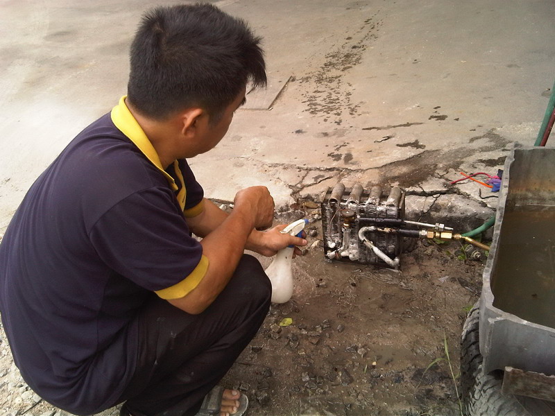 คำตอบที่ 3 จากนั้นก็ทดสอบว่าคอล์ยเย็นรั่วหรือเปล่าแล้วก็ทำความสะอาดด้วยน้ำยา (มันคืออะไรก็ไม่รู้แต่รู้ว่าฉีดๆ เข้าไปแล้วขาวจั๊วเลย)