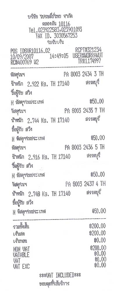 (ลงทะเบียนเขาจำกัดน้ำหนักไม่เกิน2กก. เลยต้องแยกชิ้นแต่ก้อยังเกินอยู่ดี แต่ EMS ไม่จำกัดน้ำหนักแต่แพงมาก เลยต้องขอ จนท.ให้ลดหย่อนหน่อย)...