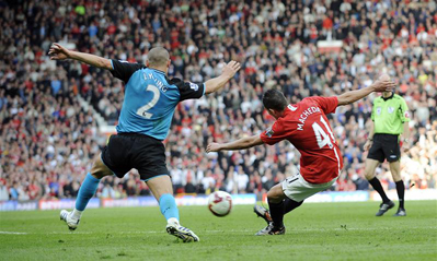 จน กระทั่งถึงนาทีที่ 23 แมนฯ ยูไนเต็ด ก็ได้จุดโทษเมื่อ เตเวซ แทงทะลุช่องให้พาร์ค ชี ซอง หลุดเข้าไปในเขตโทษและใช้ความเร็วแตะบอลหลบโฆเซ่ เรน่า ซึ่งแม้นายทวารชาวสเปน จะไม่ได้รวบแต่ผู้ตัดสินก็เป่าให้เป็นจุดโทษ และเป็นคริสเตียโน่ โรนัลโด้ อาสาสังหารเข้าไปอย่างเฉียบขาด
