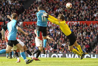 กลับมาเล่นกัน ใหม่ในครึ่งหลัง ปีศาจแดง เดินหน้าเต็มตัวบุกจะเอาตีเสมอง่ายๆ และมีจังหวะหวาดเสียวทั้งลูกที่ เรน่า รับบอลเปิดของโรนัลโด้ พลาดไปชนเสา รวมถึงลูกที่เตเวซ เปิดมาที่เสาไกลแต่เกือบจะย้อยเข้าประตูต้องปัดทิ้ง และลูกที่ โรนัลโด้ เปิดเข้ามาให้รูนี่ย์ โขกย้อนมาที่เสาสองแต่เตเวซ เข้าไม่ถึงบอล ลูกผ่านหน้าปากประตูออกไปแบบไม่มีใครอยากเช่อ