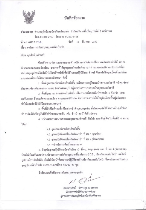 คำตอบที่ 13 โครงการ 3 ออฟโรดร่วมใจดับไฟป่า ผมและตัวแทน Strada 4x4 Club ได้ส่งมอบอุปกรณ์ดับไฟป่า ที่พี่น้องหลายท่านได้ให้การสนับสนุนมา ให้กับเจ้าหน้าที่ส่วนอนุลักษณ ณ. สำนักงานที่ศรีราชา เมื่อวันที่ 3/4/2552 ที่ผ่านมาครับ