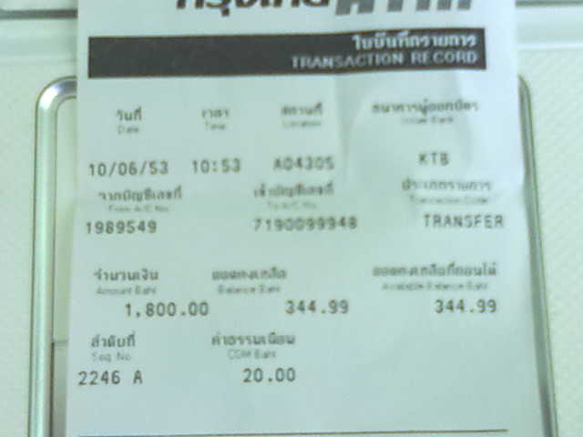 - ค่าตัว td04 = 1,000 บาท +ค่าส่ง นำหนัก 7.6 kg = 360 บาท , ค่ากล่อง (ต้องใช้กล่องที่ไปรษณีย์)= 32 บาท รวมเป็น 1,392 บาท พอดีครับ โอนได้ที่เลขบัญชี ธนาคารกรุงไทย สาขาราชบุรี ออมทรัพย์ เลขที่ 705-1-43646-5 นิพนธ์ โอนแล้วโทรแจ้งด้วยครับ ขอบคุณครับ