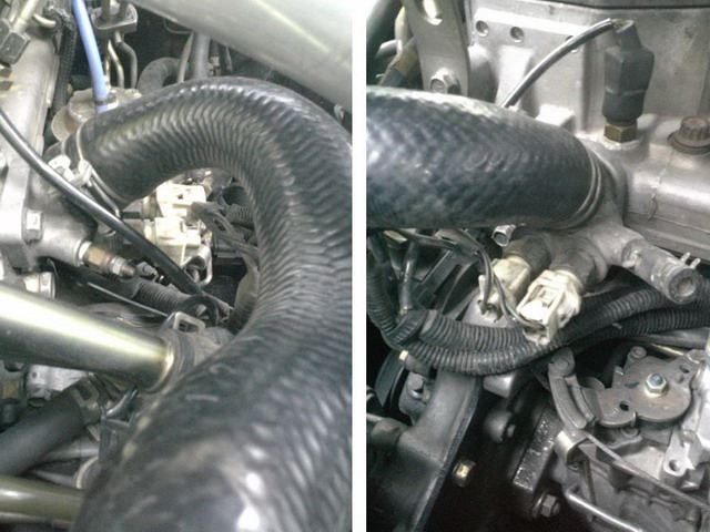 ก็มีที่ท่อน้ำ บน ออกจากเครื่องเข้า หม้อน้ำ ก็จะมีตัวเซ็นเซอร์ ตรงกลาง