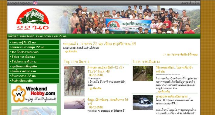 ตอนนี้ทางกลุ่ม 22นอ. ได้มีเว็บเป็นของตัวเองเรียบร้อยแล้วครับ ดังนั้นจึงประชาสัมพันธ์ให้ผู้เกี่ยวข้องในวงการ Offroad ได้เข้ามาคุยเข้ามาทักทายกับทางกลุ่มของเราได้ตลอดเวลาครับ เรียนเชิญเข้ามาได้นะครับ http://www.22nor4x4.com