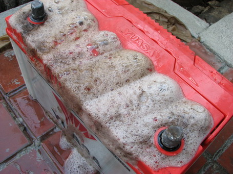 คว่ำแบต ใช้โซดาไฟกรอกเข้าไป ล้างออก แล้วเติมน้ำกรดใหม่ลงไป อัดไฟ 12 โวล์ท 5 แอมป์