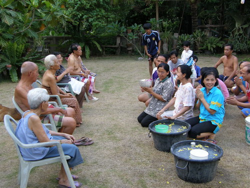 ภาพแรก (เปิดกระทู้) เป็นภาพ พี่อาวุโสสุด กล่าวนำขอขมา และขอพรจากผู้ใหญ่ ก่อนรดน้ำดำหัว