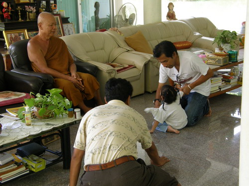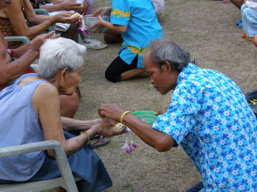ลูกหลานรดน้ำขอพร ตามลำดับ