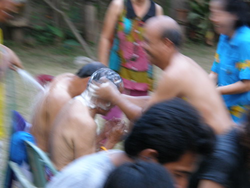 หลังจากลูกหลานรดน้ำครบแล้ว ก็อาบน้ำ (อาบจริง ๆ ถูสบู่, สระผม, ล้างเท้า กระทั่งช่วยเปลี่ยนผ้า )