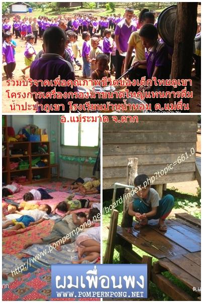 .....โรงเรียนบ้านน้ำหอม เป็นโรงเรียนที่จัดว่าอยู่ในถิ่นทุรกันดารพอสมควร ไฟฟ้าใช้โซล่าเซล์ น้ำใช้ประปาภูเขา มีนักเรียนประมาณ268คน นักเรียนส่วนใหญ่เป็นเด็กชาวดอย ซึ่งต้องเดินเท้ามาเรียนจากบ้านที่อยู่ห่างไกลจากโรงเรียนพอสมควร บางคนไกลถึง20ก.ม. ส่วนใหญ่จึงต้องอาศัยอยู่ที่โรงเรียนถึง147คน ในช่วงเปิดเทอม .....