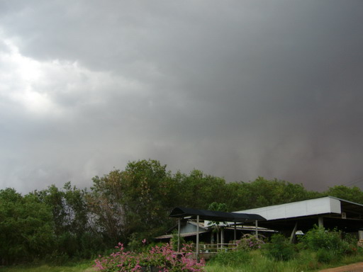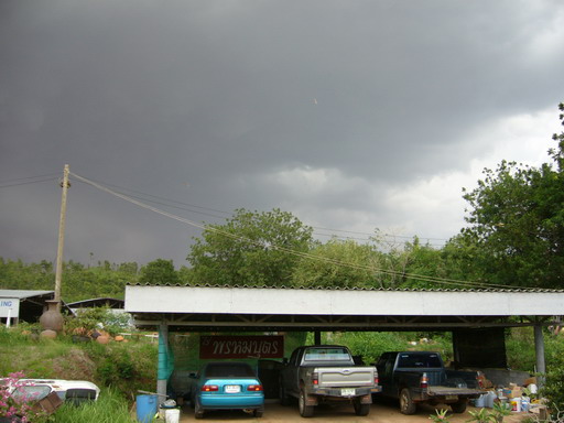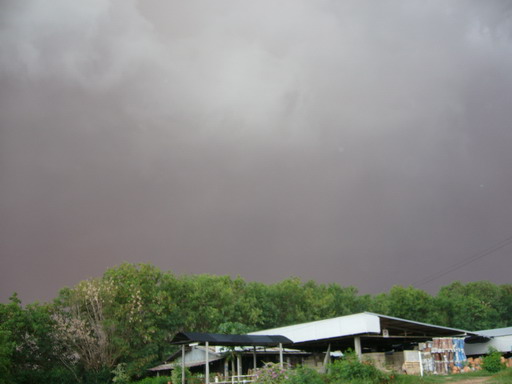 ด้วยความแรงของลมที่หอบเอาดินลูกรังฟุ้งกระจายเต็มท้องฟ้า พร้อมกับเสียงฟ้าคำรามอันน่ากลัว