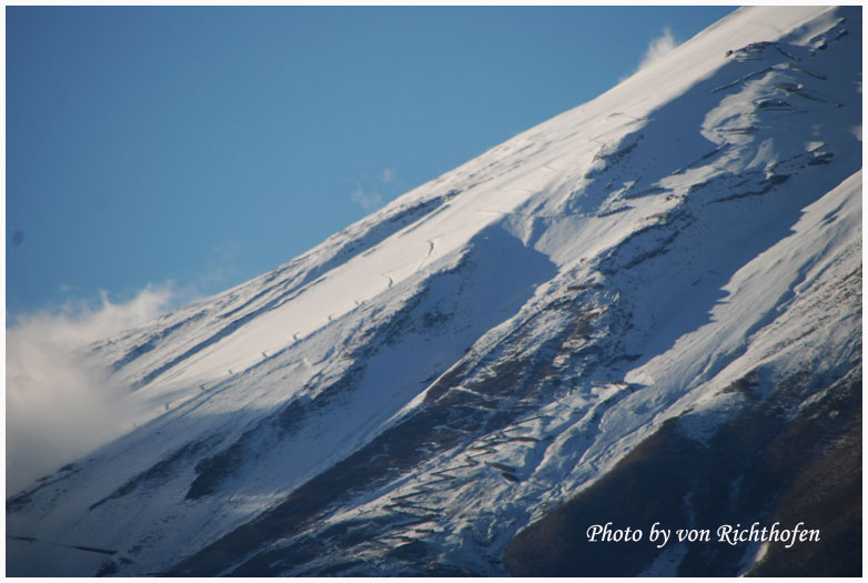 เนื่องจากเมื่อวานนี้ฝนตกทั้งวันทางขึ้นฟูจีซังเลยเต็มไปด้วยน้ำแข็งลื่นๆเต็มทางที่รถต้องตะกายขึ้นไปที่ระดับสามแล้วเดินเท้าต่อ