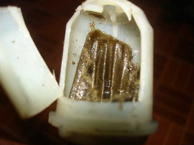 เมื่อวานที่อู่เพื่อนย่านสะพานปทุมธานี มีรถโตต้าไฮลักซ์เข้ามาล้างหัวฉีด เปลี่ยนกรองโซล่า พอทราบว่าใช้น้ำมันพืชปี๊บARO เช่นกัน เลยขอให้ช่างผ่ากรองที่ถอดออกมาดู เสียดายไม่ได้ถ่ายเก็บไว้