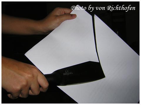 เดี๋ยวจะหาว่าโม้ว่ามีดโบวี่อะไรคมขนาดนั้น ลองแบบนี้ดีกว่า ดาบญี่ปุ่นดีๆต้องตัดกระดาษได้เหมือนมีดโกน