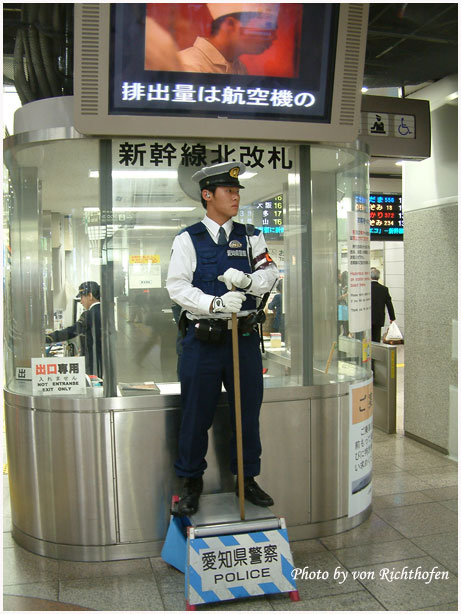ตำรวจที่สถานีรถไฟนาโกย่าครับ ยืนแท่นถือกระบองเหมือนยักษ์วันโพธิ์