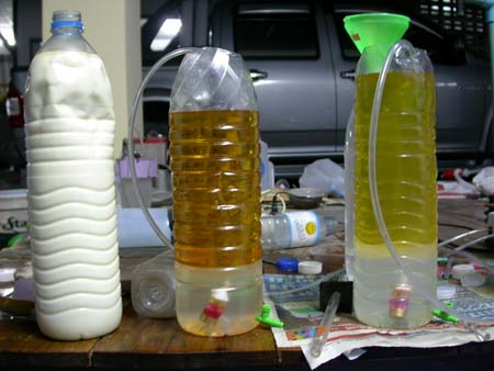 สำหรับราคาเมล็ดยางพาราอยู่ที่ 3-8 บาท/กก.ครับ ผมซื้อที่ระยอง กก.ละ 3บาท แต่แถว พัทลุง ,สุราฎธานี ราคาสูงมาก กก.ละ 8บาท เป็นเพราะ พวกที่ซื้อ ไป เพาะขยายพันธุ์ตั้งราคาให้สูงแต่ต้องเป็นเมล็ดที่ใหม่ละสมบูรณ์ แต่พอได้พอตามที่ต้องการแล้วก็จะไม่ซื้อ บางคนเก็บมาแล้วก็ยังไม่รู้จะเอาไปทำอะไร ส่วนของผมจ้างน้องๆหลานๆแถวบ้านเก็บมาให้ เอาหมดยกเว้นเน่าและลีบ เลยจ่ายไปไม่เท่าไหร่ ผมเคยลองเก็บไว้ประมาณ 3ปีแล้วก็ยังไม่เสียครับ (ไม่แกะเปลือกออก)ข้างในจะแห้งและเนื้อจะสีน้ำตาลเข้มมีน้ำมันมาก แต่นำมันพืชใช้แล้วต้นทุนน่าจะถูกกว่าเยาะเลยครับ แต่ตอนนี้ผมทำเพื่อมาทดสอบเครื่องยนต์ ปริมาณไม่มากนัก เพื่อเป็นแนวทาง ว่าผลเป็นอย่างไรบ้าง จะได้เผยแพร่ ต่อไปครับ ผมทดลองเครื่อง อยู่ที่ลาดกระบังครับ แต่ทำงานที่ระยอง