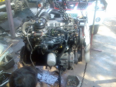 เมื่อประมาณอาทิตย์ก่อนได้แวะเข้าไปในอู่ที่วางเครื่องปรากฏว่าเจอ FRONTIER กำลังถอดเครื่องดีเซลออก แล้วใสเครื่องเบนซินของ NISSAN เข้าไป เมื่อไปมองเครื่องที่กำลังจะวางปรากฏว่าเป็นเครื่อง เบ็นซินของ NISSAN เลยสอบถามได้ความว่าเครื่องยนต์ตัวเป็นระหัส NA 20 เป็นเครื่องที่วางใน FRONTIER ของญี่ปุ่น แต่ในเมืองไทยวางเครื่องดีเซล จัดหามจากเชียงกงบางพลี ในราคา 30,000 บาท สามารถวางใน FRONTIER ได้เลยโดยไม่ต้องแปลงและเข้ากับเกียร์เดิมได้เลย(ช่างเขาว่าอย่างนั้น) เท่าที่ดูโดยทั่วไป มีอ๊อกซิเจนเซนเซอร์ (02) ช่างบอกมีกล่องด้วยแต่วันนั้นไม่เห็นมี(สงสัยช่างคงเก้บเอาไว้)เผอิญมีธุระด่วนต้องรับไปไม่ได้คุยอะไรมากกล้องก็ไม่ได้ติดไปเลยเอากล้องโทรศัพท์ถ่ายรูปมาให้เพื่อนสมาชิกได้ดูและวิจารณ์ คุณปัญ หรือคุณอโณทัยหรือคุณมืด หรือสมาชิกท่านอื่นที่มีข้อมูลเกียวกับเครื่องนี้ ขอความกรุณาช่วยวิจารณ์หรือให้ความเห็นด้วยครับ เพื่อที่จะเป็นประโยชน์กับพวกเรา