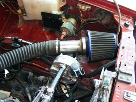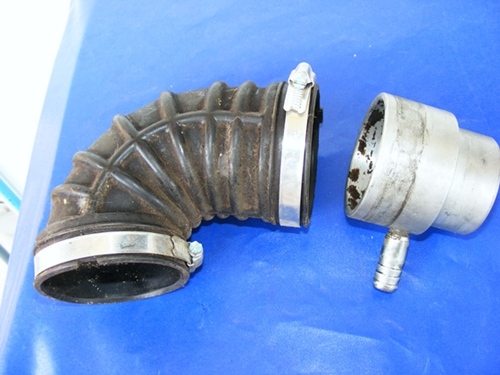ท่อนแรกใช้ท่อกรองอากาศของd-maxมาครอบปากคาร์บู ขนาดเท่ากันเป๊ะ สวมด้วยมิกซ์ที่กลึงให้พอดีกับวงในของท่อนี้ ต่อด้วยท่อย่นๆที่เห็น+ทำข้อต่อจากสแตนเลส+กรองเปลือย(หุๆๆตอนนี้เริ่มเขลอะๆแล้ว)