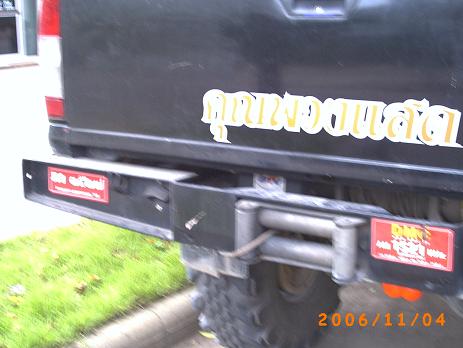 กันชนท้ายของ ((( คุณพวงแสด ))) สไตล์ BTV ครับ เสริมแขนยึดกับ แชสซีส์ ให้แข็งแรง ไว้รองรับ การกระแทกที่ไม่คาดฝัน และรองรับการดึงของ วินซ์ สำส่อน เอ๊ย samson 8000 ปอนด์ ครับ