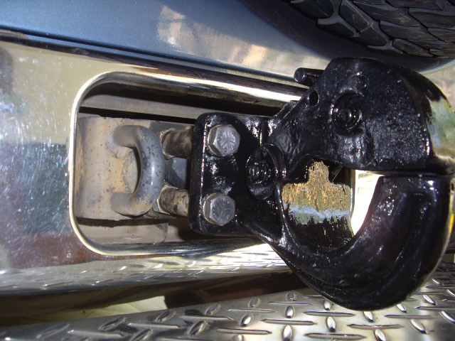 ความแข็งเเรงเวลาดึงตรงๆไม่มีปัญหาแต่ถ้าดึงเฉียงๆกลัวว่าน็อตจะเอาไม่อยู่นะครับไม่รู้ว่าที่ติดๆกันทำอย่างไรครับหรือว่าทำหน้าแปลนขึ้นมาอีกแล้วต่อด้วยเหล็กความยาวเท่าๆกับที่ผมรองด้วยบูชแล้วขันด้วยน็อตอีกสองชุดคือชุดหนี่งติดกับตัวถังรถอีกขุดมาติดกับตัวขอลากครับ