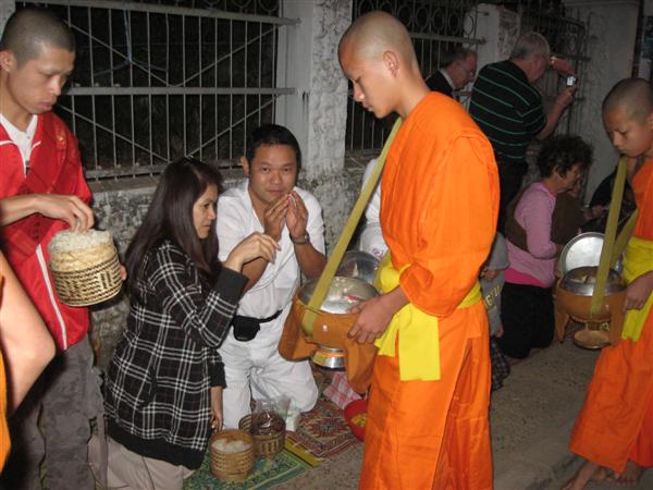 พี่เจี๊ยบใส่เสื้อสีขาว อ้อไม่ใช่ครับต้องเรียกหลวงพี่แล้วครับ