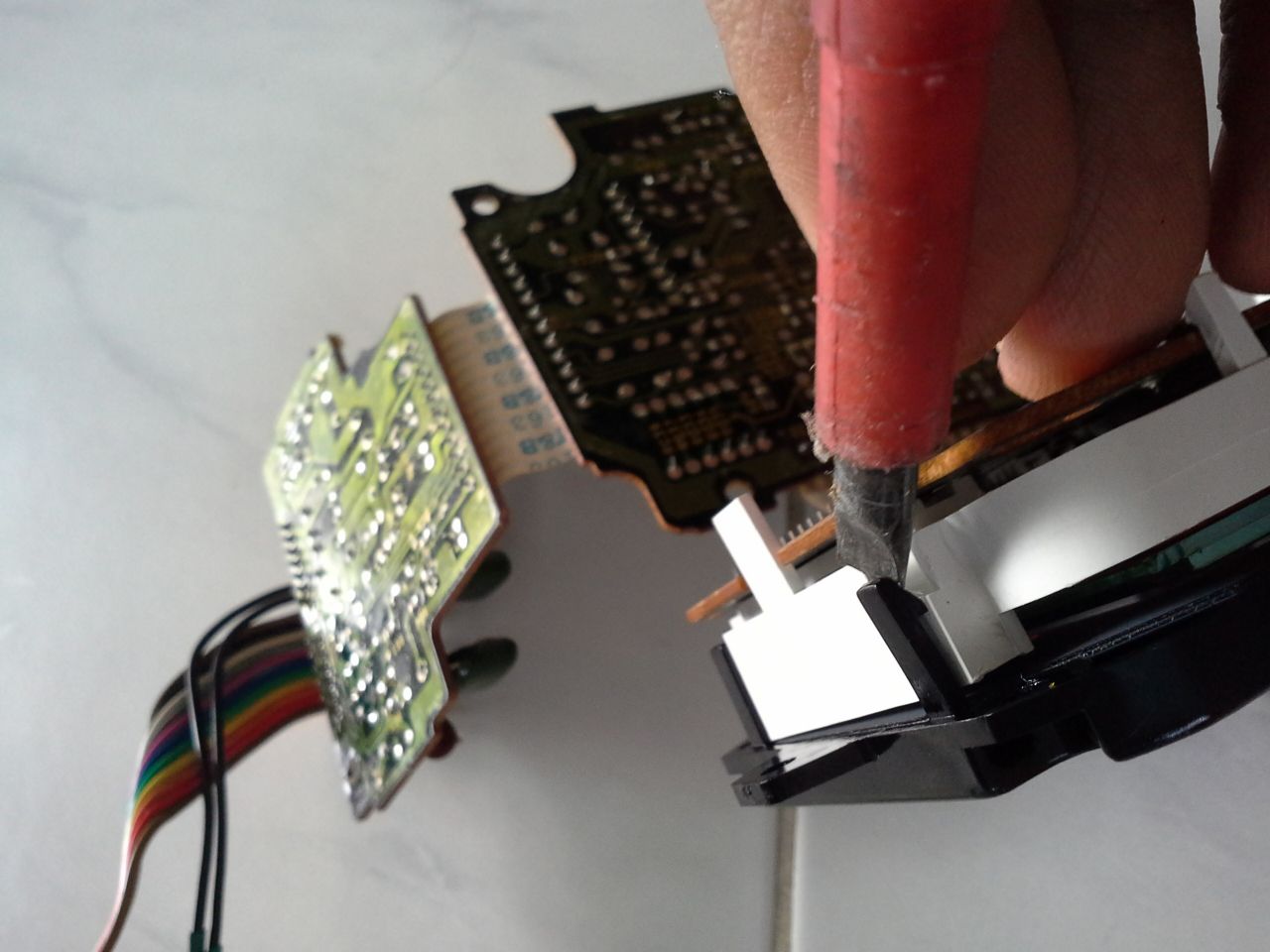 ตรงทีวงสีขาวๆ ให้สังเกตุ จอสีส้มๆ ตรงผลึกเหลวต้องมีสีเดียวกันเสมอ ถ้ามีสีดำๆเว้าๆแหว่งๆ แสดงว่าจอเรี่มเสื่อม ไม่ต้องซ่อมครับ เปลี่ยนอย่างเดียวเลย