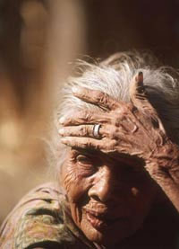 มีเรื่องเล่าว่า แม่ผู้แก่เฒ่าเดินไม่ได้คนหนึ่ง เป็นที่รำคาญใจของลูกชายเหลือเกิน แต่ไม่รู้จะ เอาแม่ไปฝากใครเลี้ยงแทน เพราะสมัยนั้นยังไม่มีสถานสงเคราะห์คนชรา จึงตัดสินใจแบกแม่เอา ไปปล่อยป่าตามยถากรรม แม่ไม่วอนขอ ไม่ถาม ไม่ว่าอะไร ตั้งใจหักกิ่งไม้ตามทางเรื่อยไป เข้าป่า ลึกไกลมากแล้ว ลูกชายวางแม่ลงบนโขดหิน แล้วหันหลังจะเดินทางกลับ ตอนนี้เอง แม่ตะโกน ตามหลังลูกไปว่า "ลูกเอ๋ย เดินตามรอยกิ่งไม้ที่แม่หักไว้นะ จะได้ไม่หลงทาง"