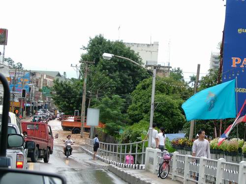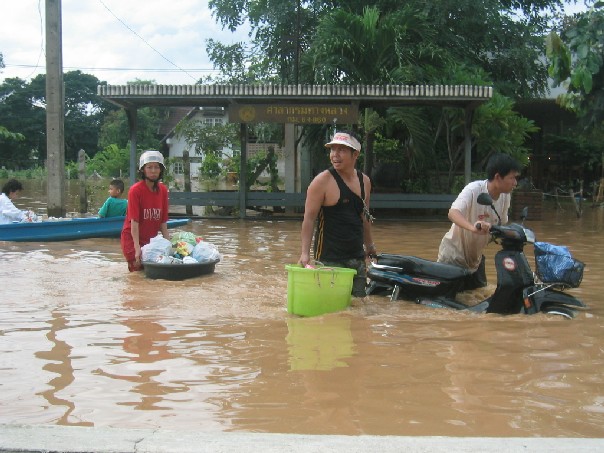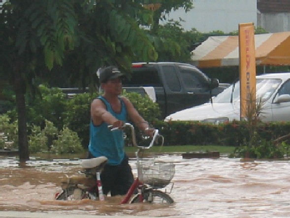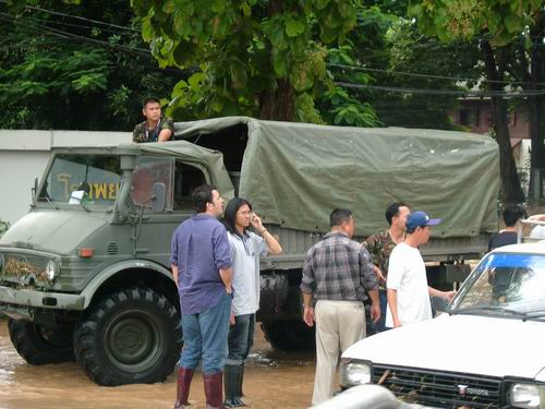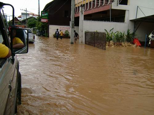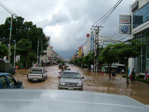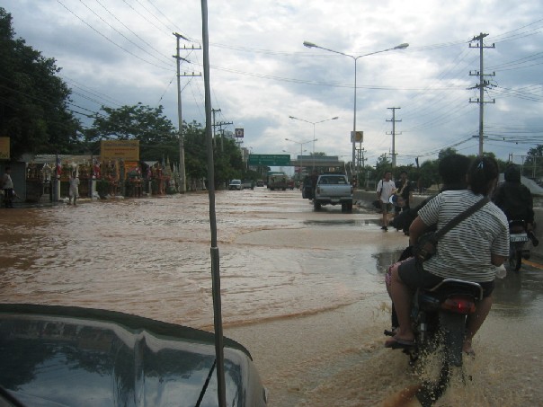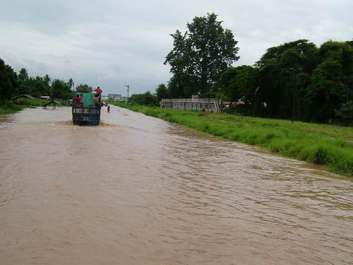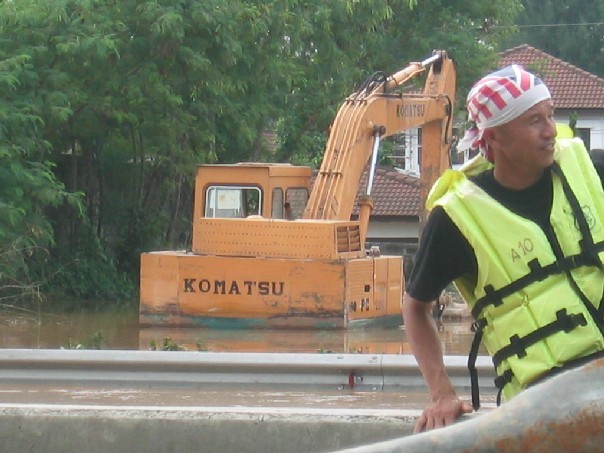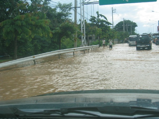 นาทีระทึก ลุยน้ำลึกที่สุดในชีวิต โดยไม่ได้เตรียมการใดๆ ตามหกล้อไป ข้างหน้ามี ranger อีกคัน สบายๆ เส้น เลียบรถไฟตัดใหม่ เรื่อยๆ เอ๊ ทำไมยิ่งลึกๆ หลังจากตรงรูปนี้ ติดล้อแล้วครับ คร่าวๆก็30นิ้วได้ กระฉอก ขึ้นหน้าฝากระโปรงบ้าง เอาละซิ ranger ควันขาว ทีนี้ละ ผมห่างจากเค้า 100เมตรได้ หยุดซิครับ ถอยใส่เกียรหมาทันที ถอยๆๆๆ ใจก็ระทึก คุณแม่นั่งงเงียบ เมื่อกี้ยัง ท่าทางหนุกๆอยู่เลย 555หน้าซีดซะงั้น ใจก็ภาวนาขอให้ ถอยผ่านได้ เพราะข้างทางมีคลองลำน้ำกลัวตกลงไป หันไปดูข้างหน้า หกล้อ ดับไปแล้วคนงานช่วยกันเข็นเหอเหอ เสียววุ้ย