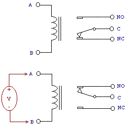 หน้าสัมผัสแบบปกติปิด (Normally Close หรือ NC.) ซึ่งในสภาวะปกติ ขานี้จะต่ออยู่กับขาร่วม (Common)