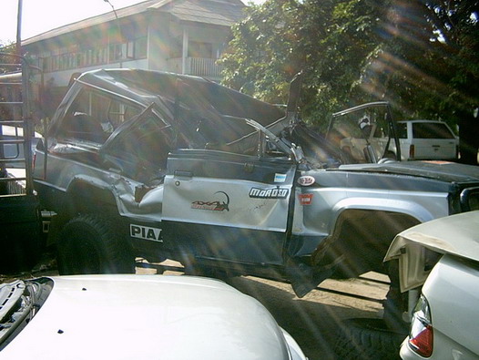 น่าจะเป็นอะไรสักอย่างที่สร้างน้ำหนักกระทบไม่น้อยกว่า 5ตัน ล้มทับหรือร่วงใส่ตำแหน่งเหนือหัวคนขับแล้วลงเฉียง 60องศาไปตำแหน่งที่วางเท้าคนนั่งหลังขวา แล้วลากเอาเสาคู่หน้าพร้อมหลังคาพับลงไปด้วยแล้วของชิ้นนี้หยุดอยู่ที่ประตูหลังขวากับซากหลังคาโดยไม่ได้กระทบกับประตูซ้ายเลยทั้งสองบาน