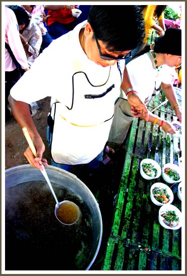 ในครั้งนี้ คุณพี่หมูสุพรรณ พร้อมด้วยภรรยาคู่ใจ คุณพี่นันท์ และเพื่อนๆ ได้เปิดโรงทาน เลี้ยงอาหาร เป็น ก๋วยเตี๋ยวหมูสับ แก่ ผู้คนที่มาในงาน ไม่มีเลือกว่า จะเป็นชาวเขา หรือชาวเรา ตั้งแต่ 0900 น. ถึง 1700 น. หมดไปทั้งสิ้น ประมาณ 4,500 ชาม