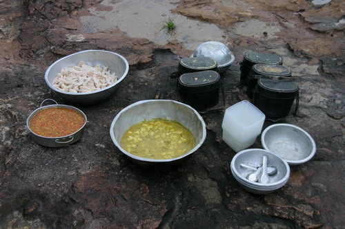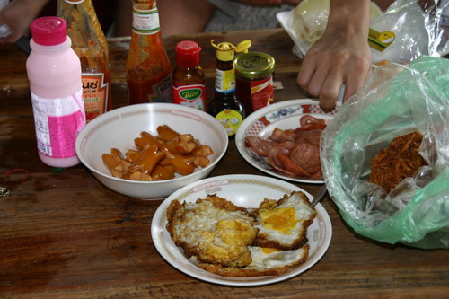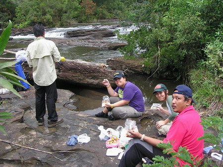 คำตอบที่ 1 เริ่มต้นเดินทาง จากหน่วยประจันตคาม ของอช.เขาใหญ่ หรือ หน่วย ขญ.10 หรือ น้ำตกตะคร้อ นี่เป็นอาหารเช้าของเราครับ (หรู นิดๆ)