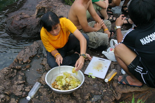 คำตอบที่ 14 จัดที่ทางแล้วฝ่ายครัวก็เตรียมอาหารครับ ที่เห็นเป็น ผักกาดดอง เตรียมต้มจืดครับ