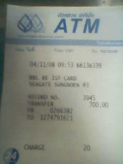 โอนตังให้แล้วค่ะ DATE 05/11/08 LOCAT2392 SEQ7417 FROM 2002307 TO1274791621 AMOUNT 1,000 .-