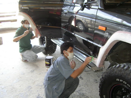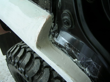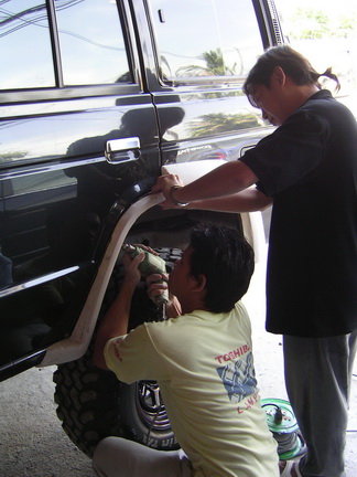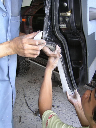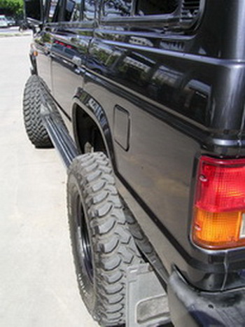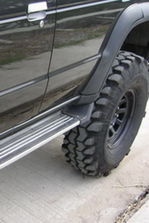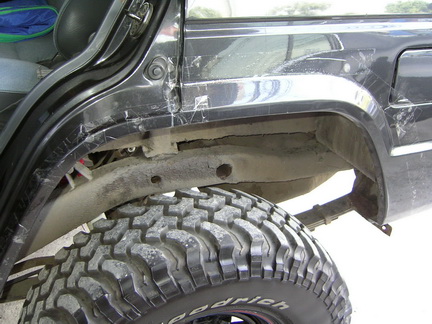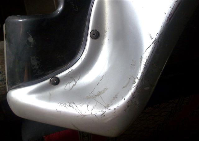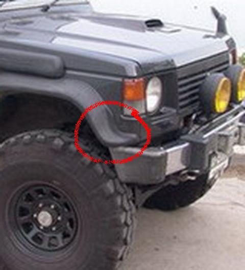 โป่งแท้เนื้อจะเป็นยาง และมีข้อสังเกตคือจะต้องมีรูน๊อตสำหรับยึดโป่งเข้ากับตัวถัง (ในวงกลมสีแดง) ฝั่งละตัว
