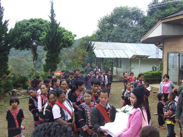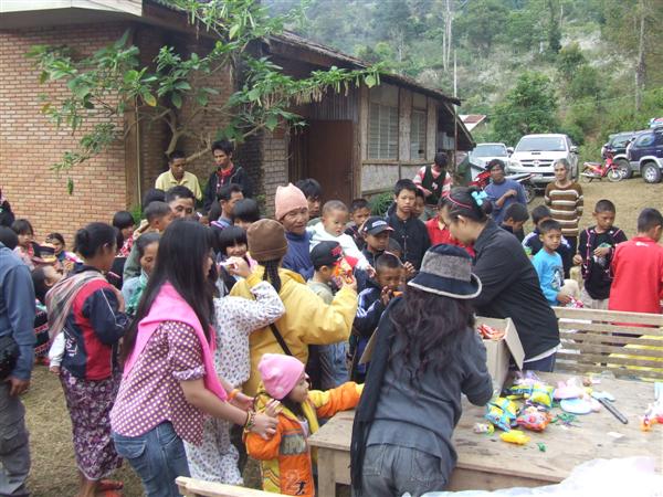 9.00 น. หลังจากรับประทานอาหารเช้าแล้ว แจกสิ่งของให้