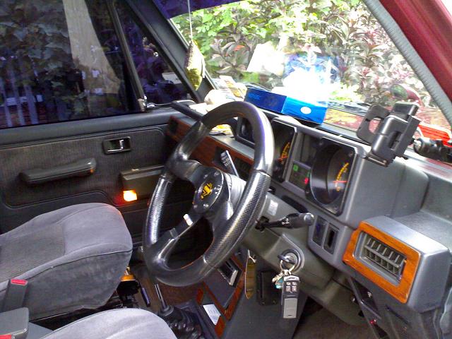 เครื่องเบนซิน 4G54 กระจกไฟฟ้าคู่หน้า กระจกมองมุม รีโมทกันขโมย เวทเทอร์การ์ด 4 บาน(ใช้มา 6 เดือนยังใหม่) ภายในเดิมๆของครบ มีพวงมาลัยไม่เดิม เปลี่ยนเป็น MoMo 14" (copy) กรอบป้ายทะเบียน ralli art