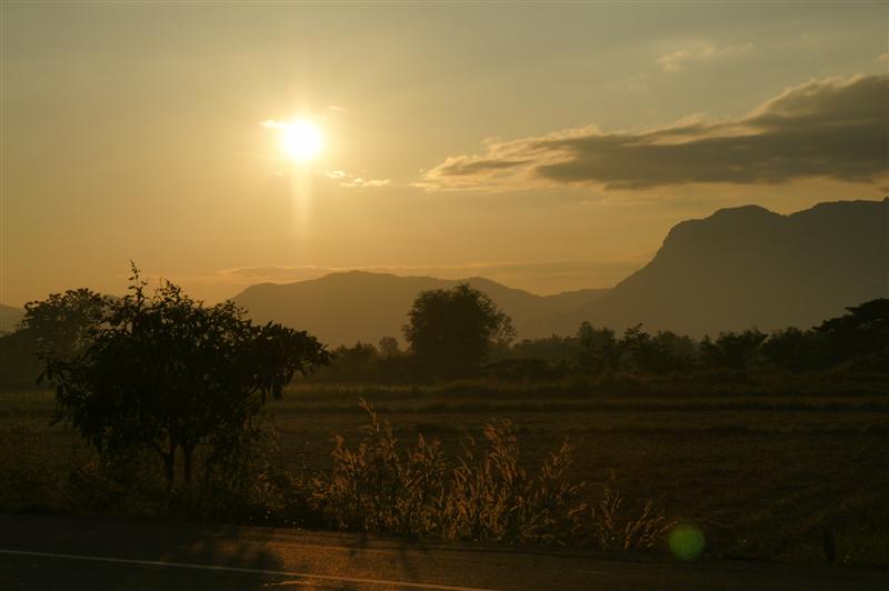 ผมออกเดินทางเมื่อวันที่ 16 ออกจากกทม.ตอน 4 โมงเย็น เส้นทางไปเพชรบูรณ์ช่วงเย็นๆจะเห็นพระอาทิตย์ตกด้านซ้ายมือ แต่ 5 โมงกว่าๆก็มืด ทางช่วงสระบุรี ก็เริ่มขึ้นเนินไปตลอดครับ
