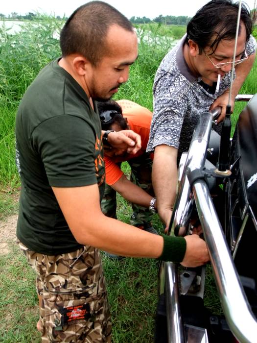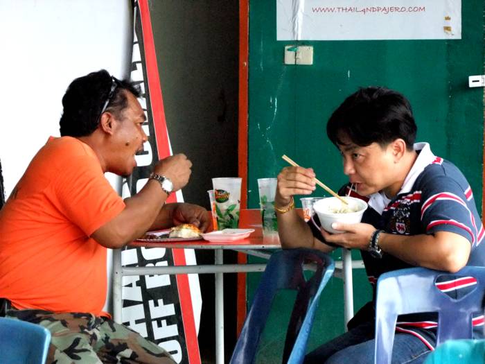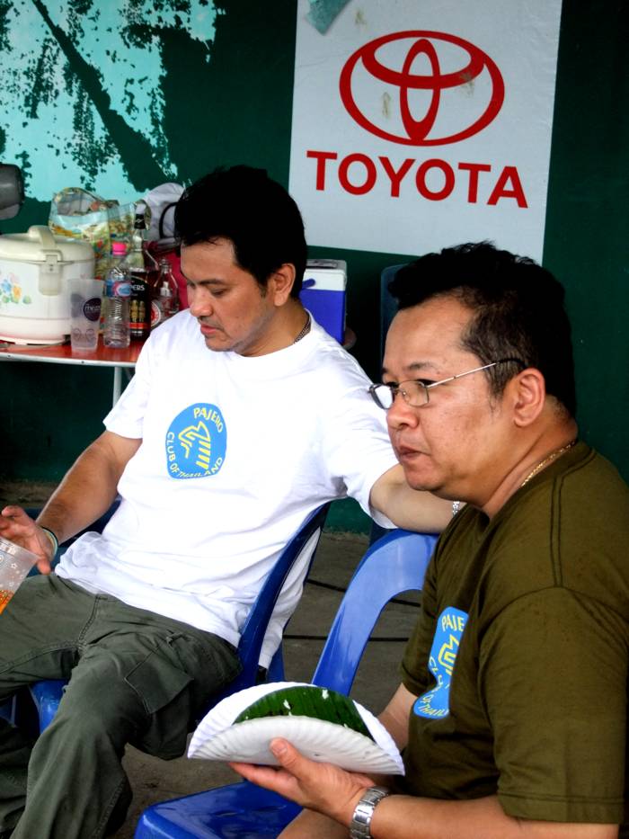 ขอบคุณ คุณหนุ่ม คุณเจี๊ยบกระโจมไพรและคุณศักดิ์มั่กๆ ที่อยู่กินเหล้ากับปาเฒ่าจนเลิกงาน แถมยังอุตส่าห์มีน้ำใจขับรถขึ้นจากหล่มโคลนให้ด้วย บรรยากาศอบอุ่นของกินอร่อยๆ ทั้งนั้นเลย คอหมูย่าง ก๋วยเตี๋ยวหมูน้ำตก อร่อยที่สุดในโลกเลย และ ต้องขอบคุณอาจารย์ซ้ง กับอาจารย์เก่ง ด้วยครับที่ช่วยสอนวิธีการขับรถแบบถูกวิธีให้กับปาเฒ่า และขอบคุณคุณศักดิ์ล่วงหน้าที่รับปากว่าจะทำหมูหันให้ผมกินในวันที่ไปนอนห้วยคอกหมูเดือนหน้า ใครอยากกินหมูหันพี่ศักดิ์ตามไปครับ