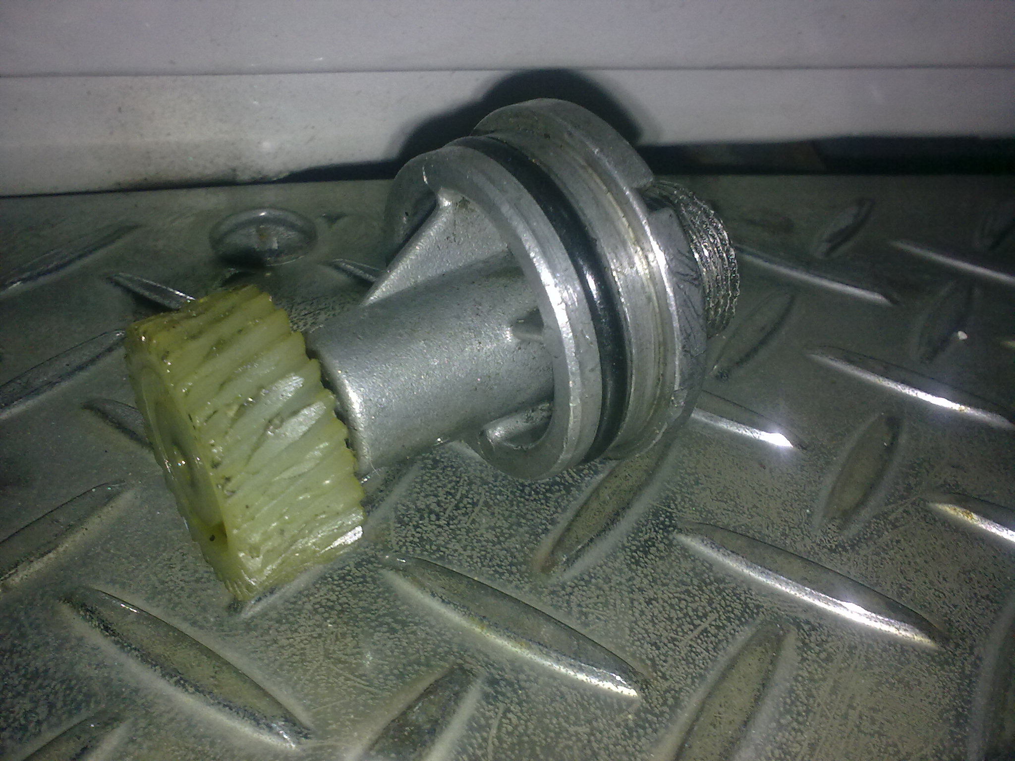 - ตัวปลายเป็นเฟืองพลาสติค ถ้าขนาดของเฟืองร่อง เท่ากับเฟืองร่องของตัวเพลาขับในเกียร์ เวลาเสียบใส่เข้าไป จะต้องเสียบเข้าไปให้แน่น ถ้าหลวมแล้ว ภายในจะคลอน เมื่อวิ่งเร็วๆ เพลาขับจะทำให้เฟืองพลาสติคบิ่นได้ครับ