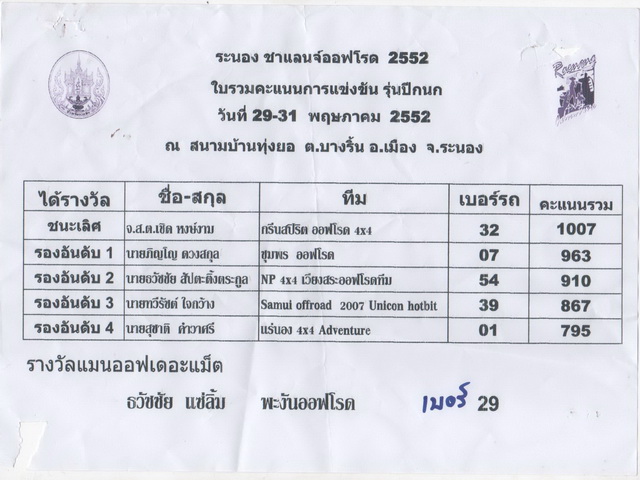 ผลการแข่งขัน ระนองชาแลนจ์ออฟโรด สนาม3
