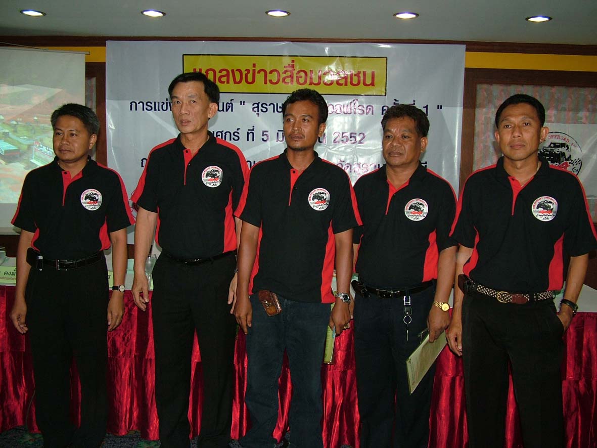 จากซ้ายไปขวา นายศุภพงศ์ เชาว์แล่น ประธานชมรมนักข่าวสุราษฎร์ธานี , นายบุญส่ง เตชะมณีสถิตย์ รองผู้ว่าราชการจังหวัดสุราษฎร์ธานี ,นายวิชัย คงมั่น ประธานฝ่ายจัดการแข่งขันและตัวแทนเครือข่ายออฟโรดภาคใต้,นายสมเชาว์ โกศล นายกสมาคมส่งเสริมการท่องเที่ยวสุราษฎร์ธานี,นายภานุ วรมิตร ผอ.การท่องเที่ยวแห่งประเทศไทย สำนักงานสุราษฎร์ธานี
