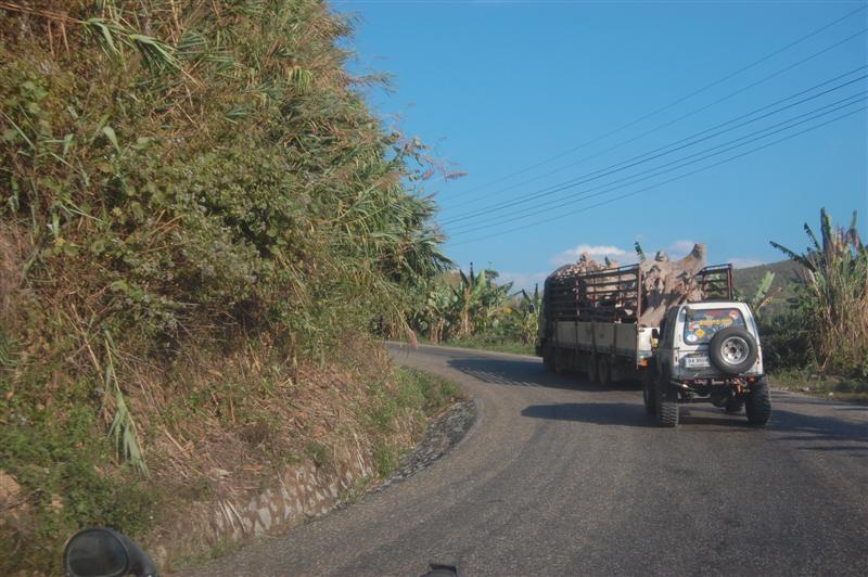 เวลาขับขึ้นเขาจะเจอรถขนรากไม้บ่อยครับ ขนไปจีน