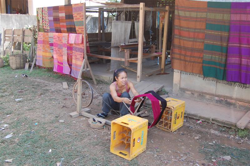 นั่งชมกันพอควรได้เลาเดินทางต่อ แว๊ะดูชมวิถีชาวบ้านทอผ้าไหมครับ