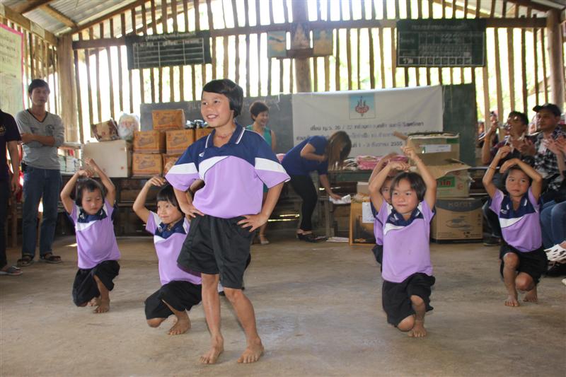 ก่อนจะบริจาคก็มีการ โชว์ของนักเรียน ตัวน้อย ๆ ให้ทีมงานได้พอหายเหงา