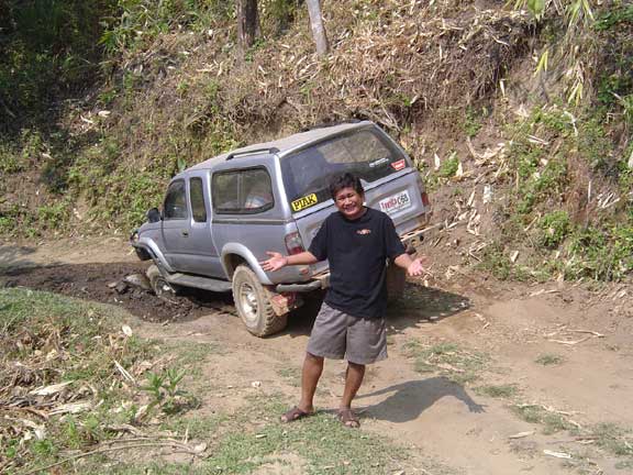 ศุกร์ที่ 13 ออกจากบ้านคุณเสือเฒ่าแปดโมงเช้า ขับเข้าแม่สอด ผ่าน อ.ท่าสองยาง ชึ้นไปถึง บ.แม่สลิด แล้วเลี้ยวขวาเข้า อช.แม่เมย