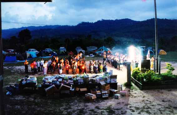 เด็กๆและผู้ร่วมทริปทั้งหมดร่วมกันจุดเทียนชัยถวายพระพร