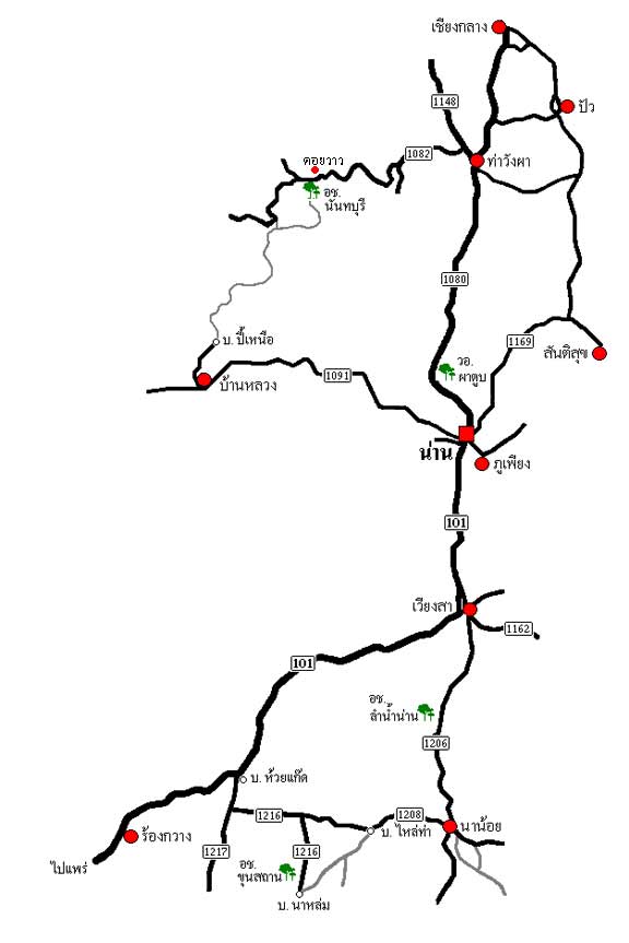 จากน่านวิ่งไปท่าวังผาเลี้ยวซ้ายไปตามเส้นทาง 1148 สักพักจะป้าย อช. ครับอยู่ซ้ายมือขับไปตามป้ายเลยครับ อช.จะอยูด้านขวามือ
