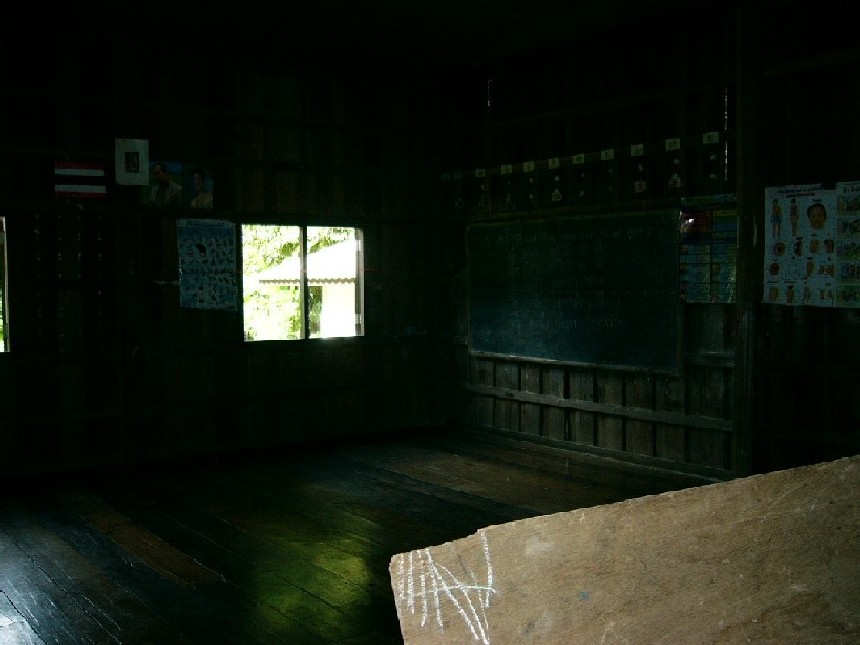 สภาพโรงเรียนที่พวกเราเห็นก็คือเป็นอาคารไม้ 1 ชั้น ตั้งอยู่บนเนินเขา ห้องเรียนเป็นห้องเรียนรวมไม่มีการกั้นแบ่งระดับชั้น เนื่องจากจำนวนครูและกระดานดำที่มีจำกัด เพดานเป็นไม้อัดที่เก่าและผุ บริเวณหน้าระเบียงจะมีคูลเลอร์น้ำตั้งไว้สำหรับให้นักเรียนดื่ม มีการสอนตั้งแต่ อนุบาล ป. 4 มีนักเรียนทั้งหมด 50 คน ครู 2 คน เป็นครูชาวบ้านสอนอนุบาล 1 คน ครูอาสาสอน ป.1 ป.4 อีก 1 คน ไม่มีการส่งครูในเมืองเข้าไปสอนเนื่องจากระยะทางที่ไกลและลำบาก ในหมู่บ้านชาวบ้านส่วนใหญ่จะเป็นชาวกระเหรี่ยงที่ยากจน มีประมาณ 50 ครอบครัว และข้อมูลที่ทราบเพิ่มเติมอีกก็คือ เคยมีทีมสำรวจจากคณะอื่น ๆ เข้ามาหลายครั้ง แต่ก็ไม่มีคณะใดที่จะกลับไปที่นั่นอีก เนื่องจากระยะทางที่ไกลและกันดาร